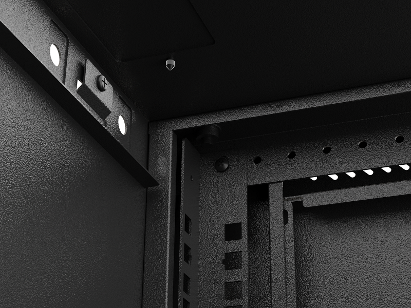 Aby zapewnić odpowiedni przepływ powietrza, w górnym i dolnym panelu znajdują się otwory wentylacyjne. Dodatkowo szafa posiada specjalne miejsce na