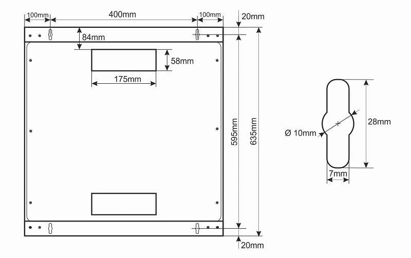 - wpusty kablowe w płycie dolnej i górnej szafy (175x58mm)