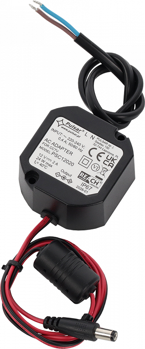 Niewielkie gabaryty (Ø=55m) umożliwiają schowanie zasilacza w puszkach elektroinstalacyjnych, obudowach kamer czy słupkach ogrodzeniowych.