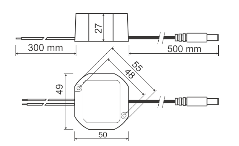 - Długość kabla DC: 0,5m + wtyk DC 5,5/2,1 żeński